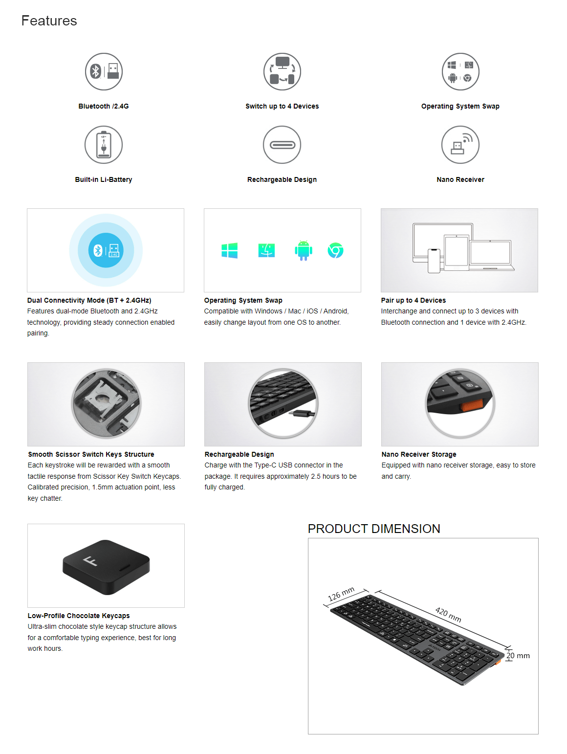 Multi-Device : 4 Device (BT*3, 2.4G*1)