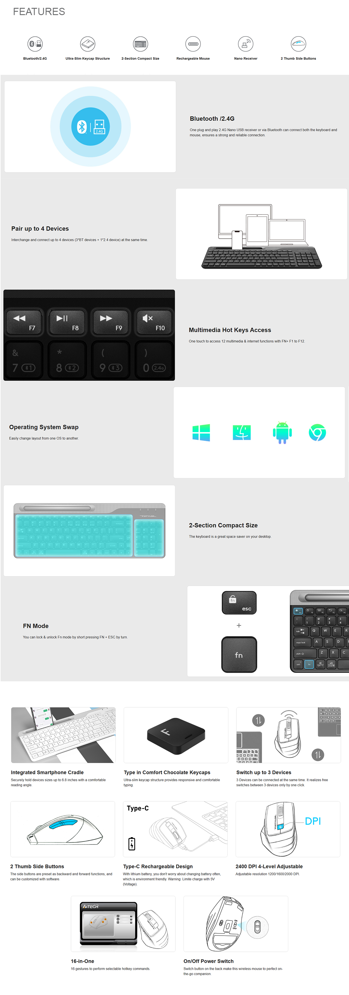 Multi-Device: 4 Devices( BT*3, 2.4G*1)
